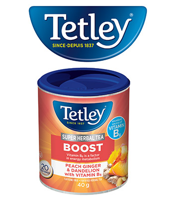 New Tetley Super Teas are Canada’s first line of teas fortified with vitamins & minerals, crafted to complement an active, balanced lifestyle.
